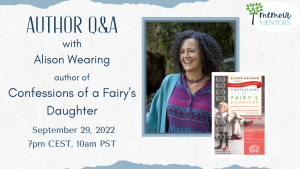 We’re very excited to welcome Alison Wearing, author of Confessions of a Fairy’s Daughter, for an author Q&A session on September 29. Join us the week before for our discussion and to submit questions for the Q&A. There will also be time after for free-form Q&A from participants.