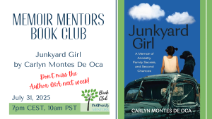 In this thoughtful and inspiring conversation, author Carlyn Montes De Oca joined our Memoir Mentors community to talk about her memoir Junkyard Girl, the courage it takes to tell the truth, and how she’s embraced the often-intimidating world of author marketing. Carlyn shares her journey from adoptee to truth-teller, offers practical tips for getting your story into readers’ hands, and reminds us that memoir writing isn’t a solo act—it’s about connection.